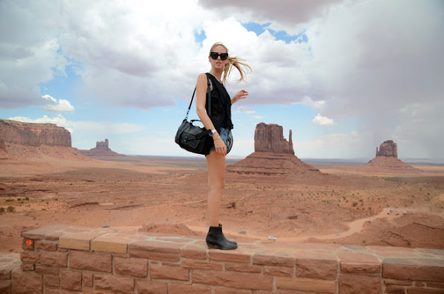 New Yorker top and sunglasses, H&M bag, Vintage boots, H&M shorts